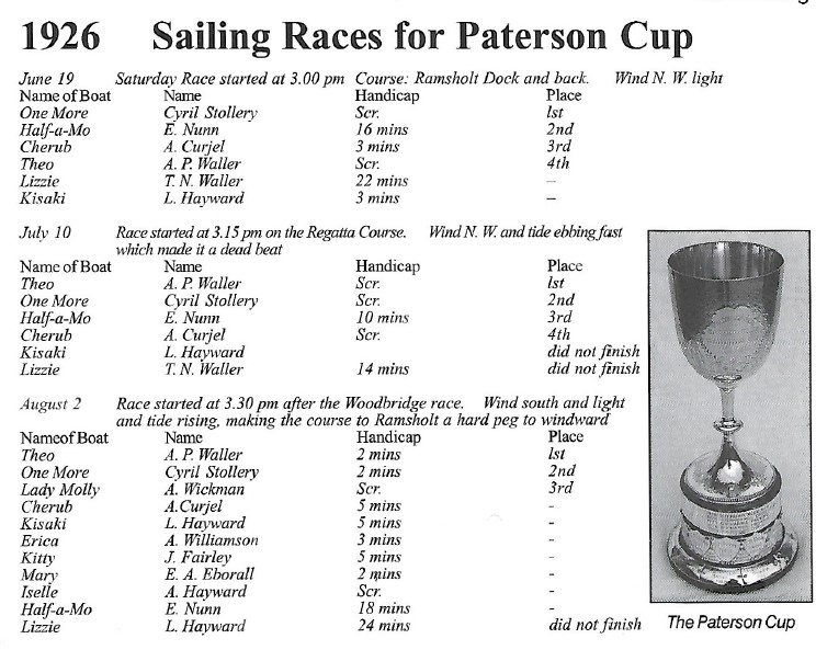Racing and leisure sailing had long been established on the Deben from Woodbridge, with races up and down river from the 1860s. Many of these paid crew members came from Waldringfield.
