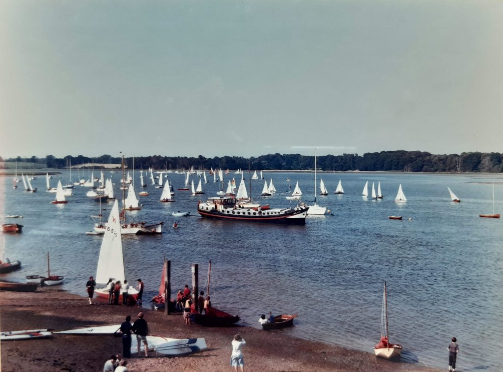 In 1958 the Dragon Class started racing, with the first owners being Mr C Stollery, Mr A G Mason, Mr M D Spear, Mr E Wright and Mr R Persouse. Fleet racing was becoming more popular with good number of Cadets, Fireflies, Dragonflys, National 12s, and Dragons. Canon Waller had started the Yachtsman’s service in the 1950s which later moved to the beach because of increasing numbers. A parade of Yachts processed upriver from Ramsholt and the Excelsior band from Woodbridge played on the Clubhouse veranda. Regattas became even more popular and still included dinghy and yacht racing and the shore events.