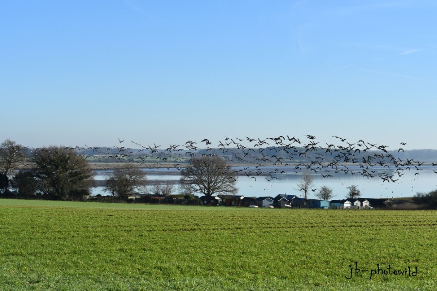 Brent Geese are Overwintering here in the area (probaly from Siberia). They graze on the fields and swim in the river in large flocks. This is why you